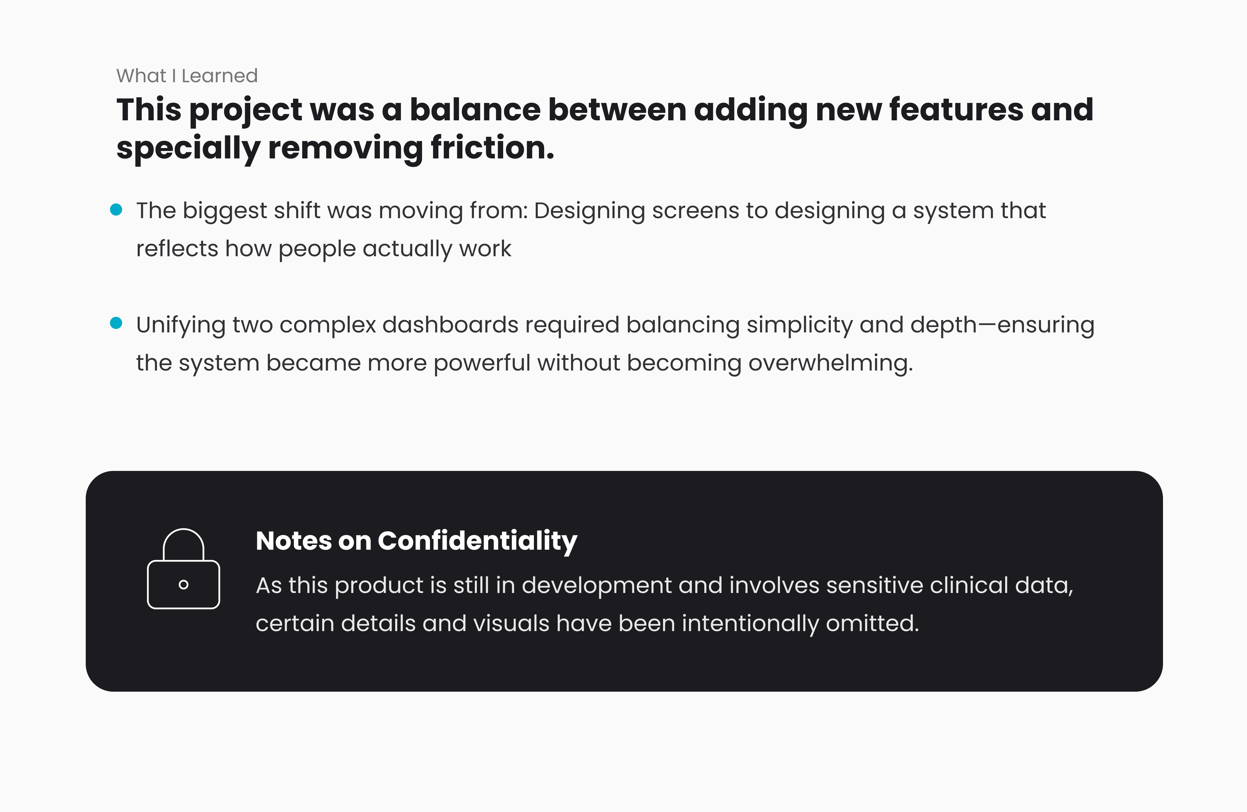 As this product is still in development and involves sensitive clinical data, certain details and visuals have been intentionally omitted.